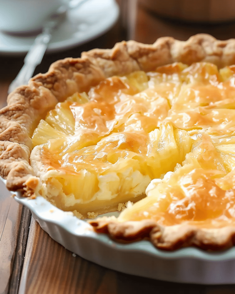 Southern Pineapple Pie is a delightful dessert that offers the perfect blend of sweet and tangy flavors. With the tropical taste of pineapple combined with a creamy filling, it’s a treat that will make any occasion feel special. The rich and smooth texture, paired with a hint of nutmeg and vanilla, makes every bite unforgettable. Whether you’re hosting a gathering or simply craving a comforting dessert, this pie is sure to impress.